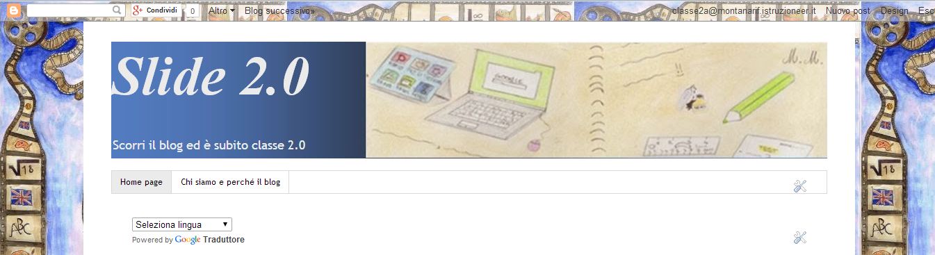 Slide 2.0 è il blog della mia classe seconda, diventata classe 2.0 in seguito ad un progetto finanziato da Coop Estense e destinato a 58 classi colpite dal sisma 2012. In tale blog i ragazzi, insieme agli insegnanti, documentano e condividono le attività scolastiche realizzate quotidianamente con le tecnologie e le nuove metodologie didattiche.