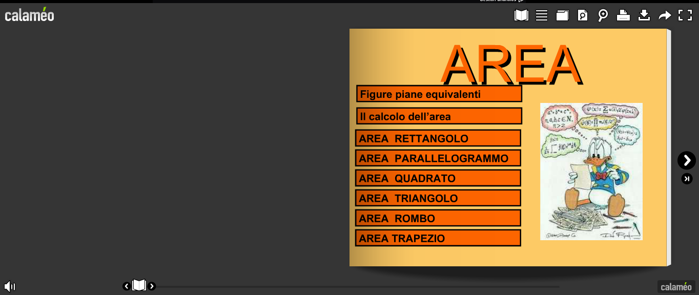 Un altro sito per condividere on line diverse tipologie di documenti é Calaméo.Interessante perchè offre la possibilita di leggere le presentazioni sfogliandole proprio come un libro,e di scaricarle. Ecco un esempio creato da un’alunna: le aree delle figure piane: nel power point alcune animazioni esplicitano meglio i contenuti.