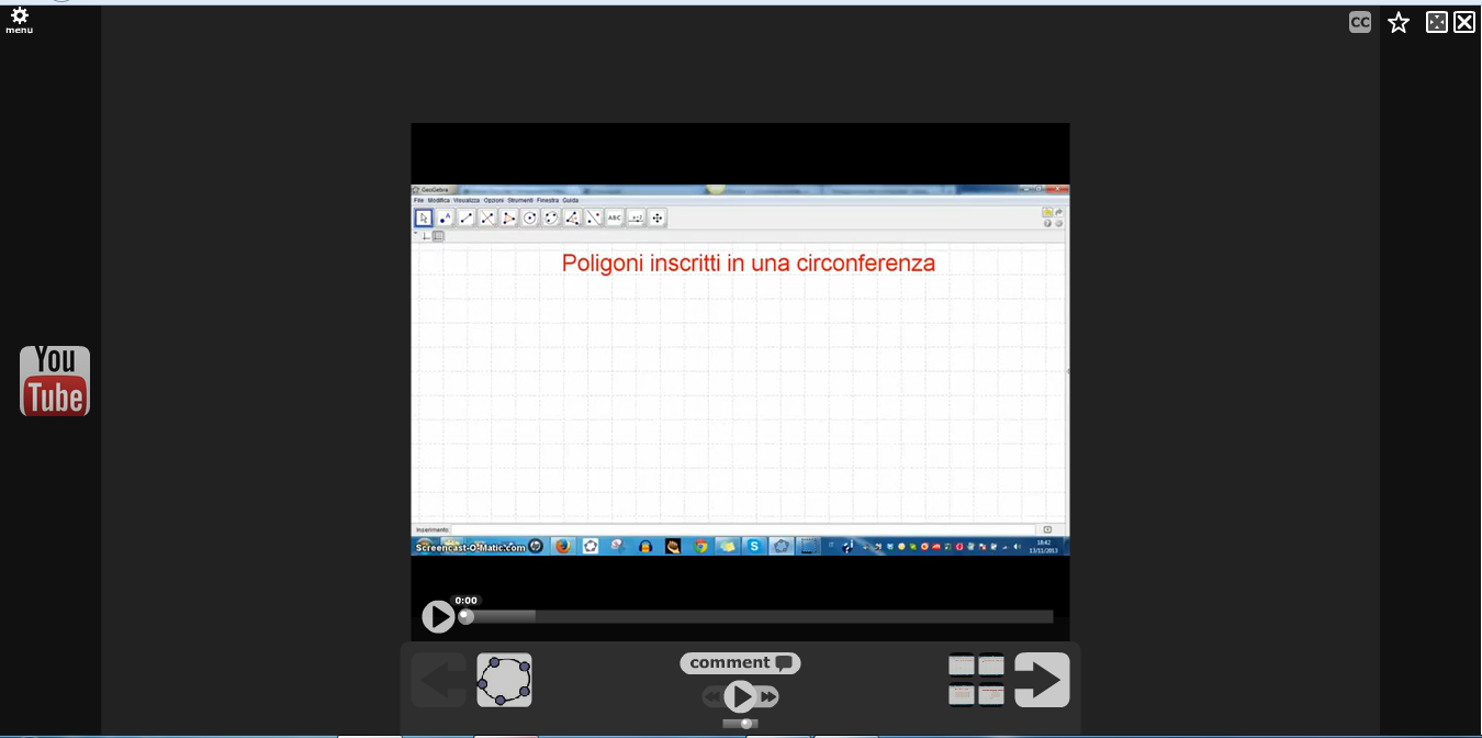 Ho provato per la prima volta l’insegnamento capovolto, dopo aver tranquillizzato i ragazzi che, qualora non avessero capito, successivamente in classe avremmo ripreso l’argomento insieme. Ho caricato in piattaforma Moodle le presentazioni effettuate con Voice Thread e Screencast-O- Matic , aggiornando le slide, di volta in volta, solo dopo attenta valutazione che i contenuti fossero stati capiti e appresi. Il coinvolgimento è stato apprezzabile, con buon riscontro anche nella verifica finale. In queste lezioni ho spiegato (non letto) l’argomento, utilizzando la presentazione di un’alunna. Successivamente, confrontandomi con una collega, ho provato a migliorare le lezioni, proponendo video nei quali ho utilizzato il software geogebra. Alcuni link inoltre rimandano a geogebra tube, you tube o a mappe concettuali, create in modalità collaborativa dai ragazzi. Gli alunni hanno anche avuto la possibilità di inserire loro commenti (funzione che ora ho disabilitato).